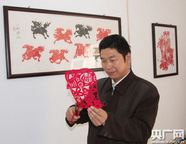 央廣網(wǎng)北京10月12日消息 據(jù)中國(guó)鄉(xiāng)村之聲報(bào)道,中國(guó)民間文藝家協(xié)會(huì)會(huì)員、中國(guó)剪紙藝術(shù)委員會(huì)會(huì)員張玉柱,從事剪紙、撕紙藝術(shù)創(chuàng)作三十多年,徒手操剪,無(wú)需起稿,心隨意到,即刻剪成。