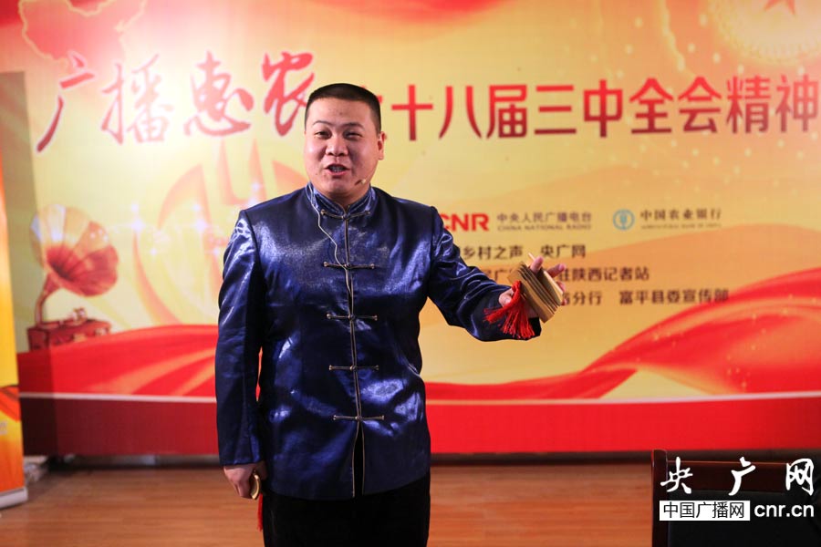 央廣網(wǎng)富平2月20日消息(記者陳江南 孟超 溫超 李偉民)2月20日上午,由中央人民廣播電臺(tái)、中國(guó)農(nóng)業(yè)銀行主辦、中國(guó)鄉(xiāng)村之聲、央廣網(wǎng)承辦的“廣播惠農(nóng)之十八屆三中全會(huì)精神宣講入鄉(xiāng)村”在陜西省的第三場(chǎng)活動(dòng)在富平縣莊里鎮(zhèn)舉行。