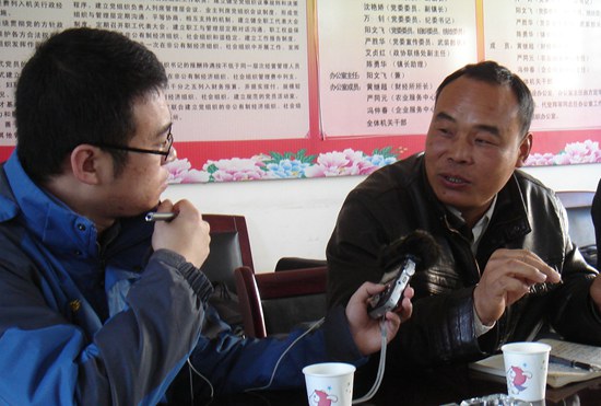 中國(guó)鄉(xiāng)村之聲記者何鵬在采訪周正爽