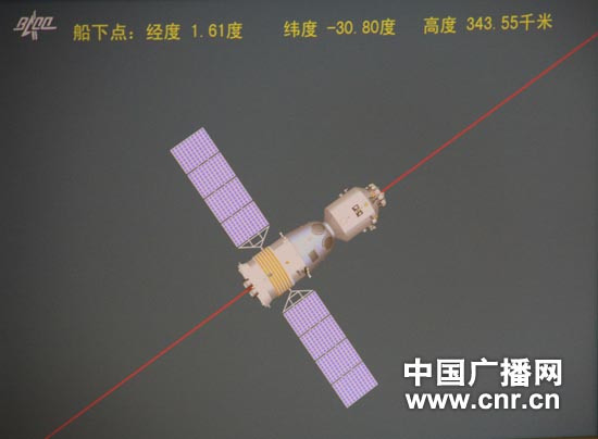 11月17日18時44分,飛船開始第一次調(diào)姿。飛控中心宣布,第一次調(diào)姿到位,第二次調(diào)姿到位,返回制動開始。(中廣網(wǎng)記者劉夢 攝)