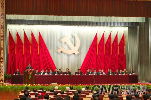 慶祝中國共產黨成立85周年暨總結保持共產黨員先進性教育活動大會,30日上午9時在中南海懷仁堂禮堂隆重舉行。胡錦濤、吳邦國、溫家寶、賈慶林、曾慶紅、黃菊、吳官正、李長春、羅干出席。中央人民廣播電臺中國之聲、中華之聲、華夏之聲對活動大會進行了現(xiàn)場直播。圖為大會會場。 中廣網記者李洪濤 攝