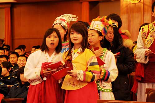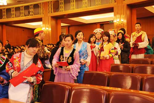 與會少數(shù)民族代表進入會場