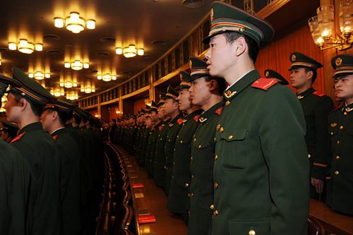 紀(jì)念黨的十一屆三中全會召開30周年大會于18日上午10時(shí)在人民大會堂舉行。圖為全體起立奏國歌。新華網(wǎng) 文濤 攝