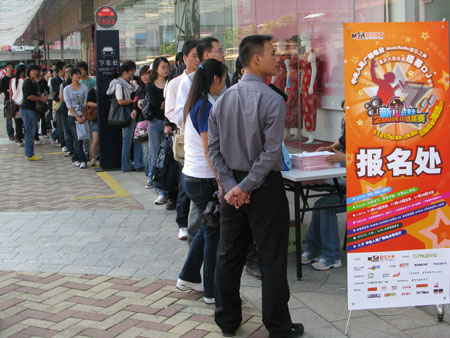 排隊領(lǐng)取報名表的應(yīng)聘者
