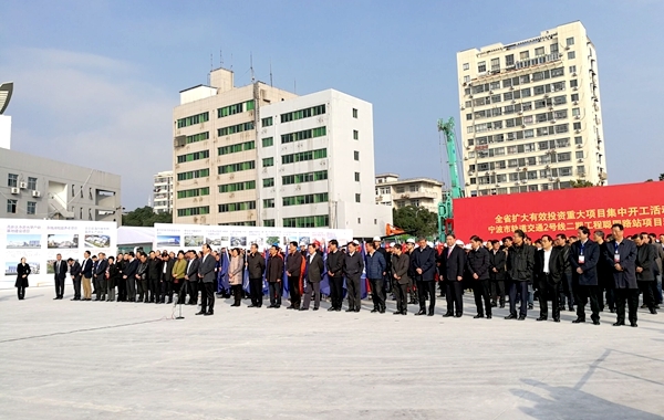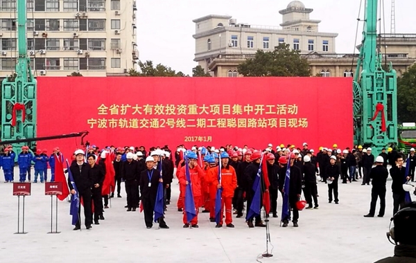 省委常委、寧波市委書(shū)記、代市長(zhǎng)唐一軍在向主會(huì)場(chǎng)匯報(bào)時(shí)說(shuō):2016年,寧波市兩批集中開(kāi)工項(xiàng)目157個(gè)已全部按時(shí)開(kāi)工建設(shè),超額完成全年投資任務(wù)。預(yù)計(jì)全年完成有效投資4960億元,同比增長(zhǎng)10%。2017年,寧波將力爭(zhēng)實(shí)現(xiàn)有效投資增長(zhǎng)10%,F(xiàn)在,我們?cè)趯幉ㄊ熊壍澜煌?號(hào)線二期聰園路站項(xiàng)目現(xiàn)場(chǎng),全市共有88各項(xiàng)目參加集中開(kāi)工活動(dòng),總投資達(dá)1029億元,其中投資100億元以上項(xiàng)目1個(gè)、50億元以上項(xiàng)目3各、20億元以上項(xiàng)目13個(gè)。項(xiàng)目開(kāi)工準(zhǔn)備工作就緒,請(qǐng)指示。