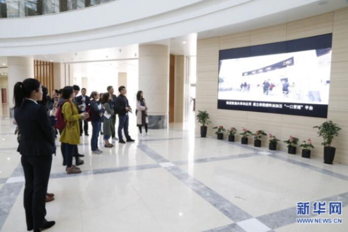 圖為記者參觀自貿(mào)試驗(yàn)區(qū)綜合服務(wù)大廳。新華網(wǎng)發(fā) 毛嘉煒攝