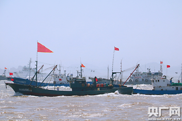央廣網(wǎng)溫州9月17日消息(記者張國亮 通訊員朱莉君)東海告別四個半月的伏季休漁期,溫州洞頭區(qū)拖網(wǎng)漁船陸續(xù)出海捕撈生產(chǎn)。9月16日上午,洞頭區(qū)鹿西鄉(xiāng)、東屏街道等地舉行開捕儀式,中午十二點,伴隨著鞭炮聲和馬達聲,漁船慢慢從港口駛出。平靜的海面瞬間熱鬧了起來,鮮艷的旗子在船頭迎風飄揚,漁船駛過的海面泛起白浪,船上的漁民也向著豐收不斷前進。