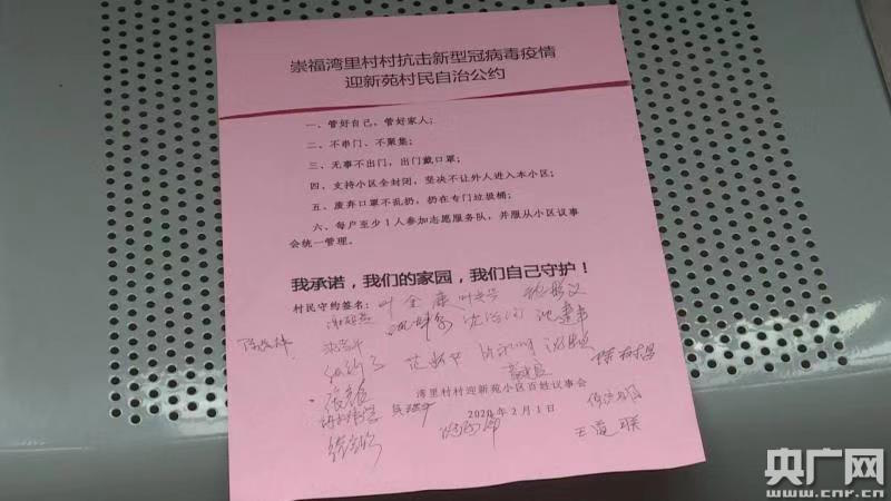沈高是一名黨員,疫情發(fā)生后他第一時間參加了村里的疫情防控志愿活動。為了給村里減輕壓力,沈高和其他幾名黨員和群眾骨干自發(fā)成立了迎新苑自治小組,還擬寫了一份村民自治公約,挨家挨戶地簽字,村民們都很支持。