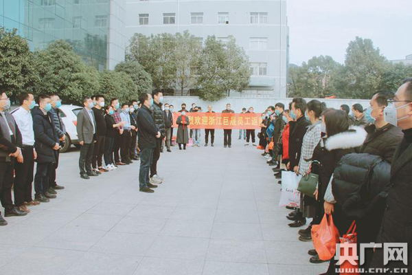 央廣網(wǎng)2月22日消息(記者王權(quán) 曹文君 通訊員李曉華)2月21日下午,經(jīng)過(guò)40多個(gè)小時(shí)的長(zhǎng)途跋涉,三輛載著來(lái)自湖南省懷化市的60余名務(wù)工人員的大巴車緩緩駛?cè)霚刂萋钩菂^(qū)藤橋鎮(zhèn)輕工園區(qū)。首批由政府包車接回溫州的返工人員,將進(jìn)入溫州黎東眼鏡有限公司等企業(yè)崗位上。