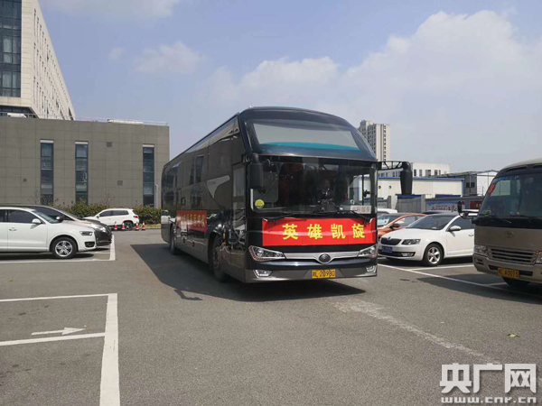 在專車緩緩駛?cè)胗觾x式現(xiàn)場,醫(yī)療隊隊員下車那一剎那,現(xiàn)場的掌聲、眾人的歡呼聲此起彼伏,所有人都用最熱情的方式,表達(dá)著對英雄們的至高敬意。