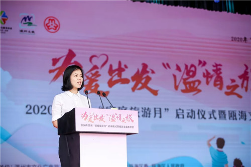 2020年溫州家庭旅游月活動(dòng)啟動(dòng)儀式上,甌海區(qū)委副書記、區(qū)長(zhǎng)曾瑞華現(xiàn)場(chǎng)致歡迎詞。他說,甌海是一座以山水文化聞名的城市,本次精心推出了十條精品旅游線路,其中,親子旅游線路集觀光、游玩、研學(xué)、購物等于一身,必將成為市民朋友組織家庭旅游的首選線路之一。誠摯邀請(qǐng)大家到甌海感受甌越文化傳承的魅力,來一次說走就走的溫情之旅。