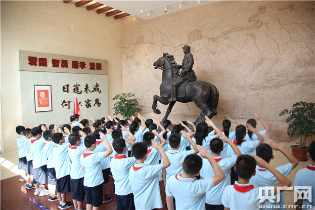 在紀(jì)念館內(nèi),講解員為孩子們講述了陳安寶烈士“取義成仁,為國捐軀”的革命事跡。一張張圖片,一件件物品,還有20分鐘的幻影成像片《陳安寶的一生》,讓孩子們對陳安寶這位抗日民族英雄的革命事跡有了更深入的了解。