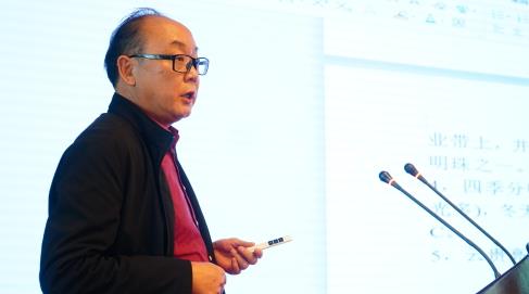 貴州省茶文化研究會(huì)副會(huì)長(zhǎng)、湄潭縣茶文化研究會(huì)會(huì)長(zhǎng)周開迅介紹貴州唯一、全國(guó)獨(dú)特的湄潭茶葉生態(tài)系統(tǒng)