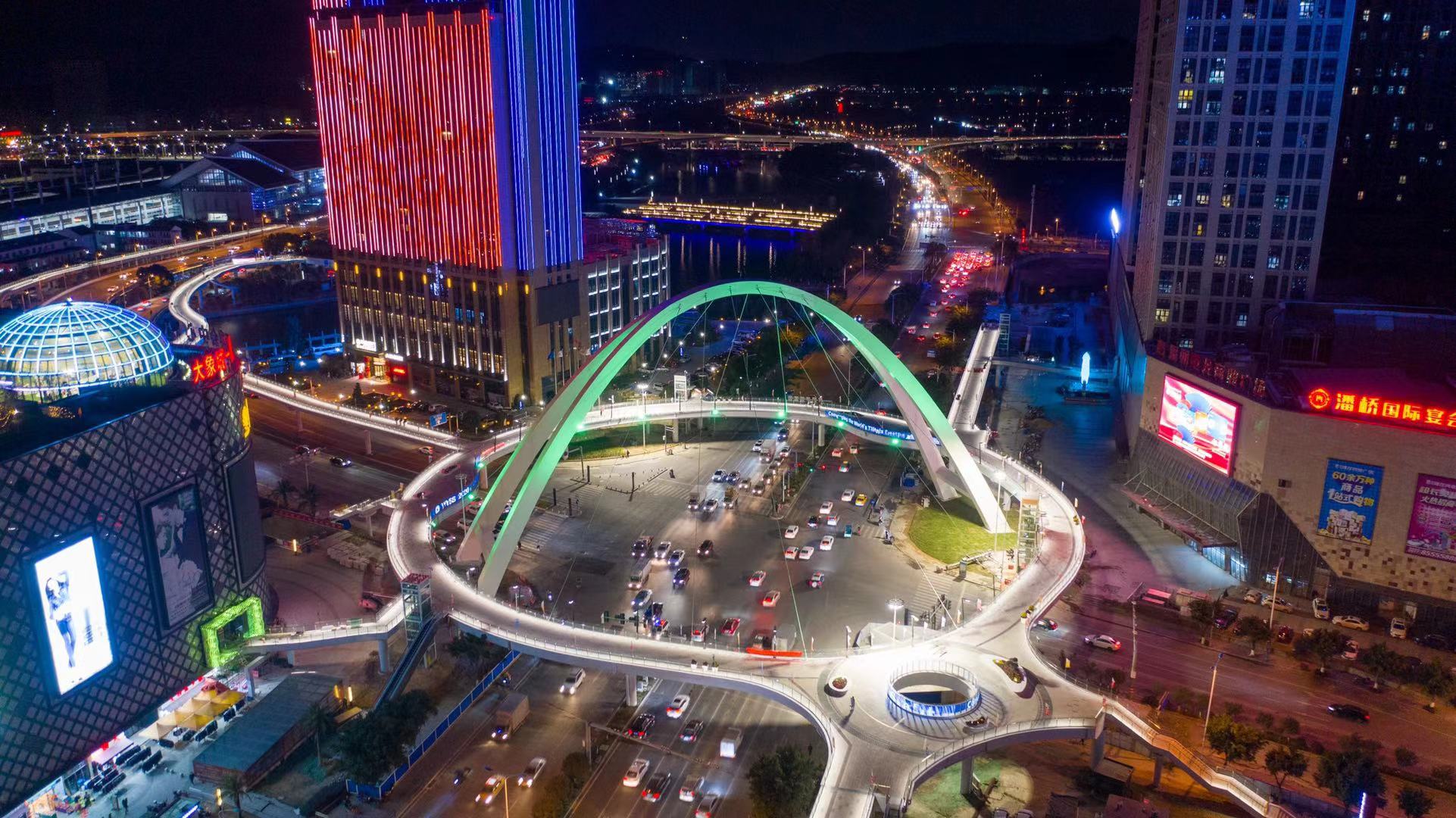 "你看空中連廊亮燈了!"近日,動車站周邊的居民驚喜的發(fā)現(xiàn),夜晚過后,環(huán)繞大象城國際商貿(mào)中心、港龍商業(yè)廣場、溫州站南服飾批發(fā)廣場、君廷大酒店之間的空中連廊迸發(fā)光彩,形成了一道靚麗的風(fēng)景線。
