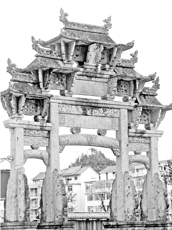 晚飯后,淳安汾口鎮(zhèn)的畹墅文化廣場熱鬧了起來,跳廣場舞的、乘涼的,還有去廣場邊鎮(zhèn)上最大的超市購物的……誰都沒有注意到廣場上那座石牌坊。
