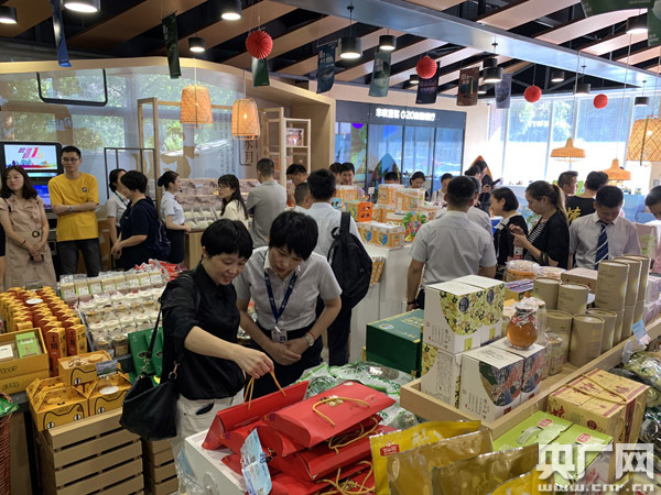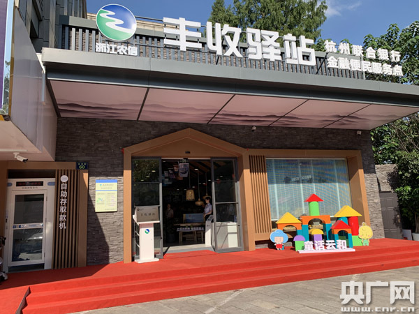 央廣網(wǎng)杭州9月7日消息(記者張國(guó)亮) 如今,在杭州街頭的銀行網(wǎng)點(diǎn),顧客不僅可以辦理各種金融業(yè)務(wù),也可以購買來自全省各地的優(yōu)質(zhì)農(nóng)產(chǎn)品。9月7日,浙江農(nóng)信豐收驛站省級(jí)旗艦店麗水活動(dòng)月“童話云和專場(chǎng)”正式啟幕。皮薄多汁的雪梨、酸辣可口的白鶴尖蘿卜條、香甜下飯的菜頭!酥猎坪涂h特產(chǎn)的木制玩具都在豐收驛站展出銷售,引起過往杭州市民的極大興趣。