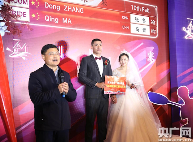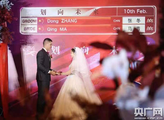 “今天我們感到特別驚喜!這是一場別開生面的婚禮,為我們的人生留下了非常深刻的印記!瘪R青手挽著張冬的胳膊,臉上露出幸福笑容,“結(jié)婚對于我們來說是一個新的開始,我們希望在新的一年里加倍努力,生活上相互照顧,訓練上相互鼓勵,爭取在東京奧運會上取得好成績!
