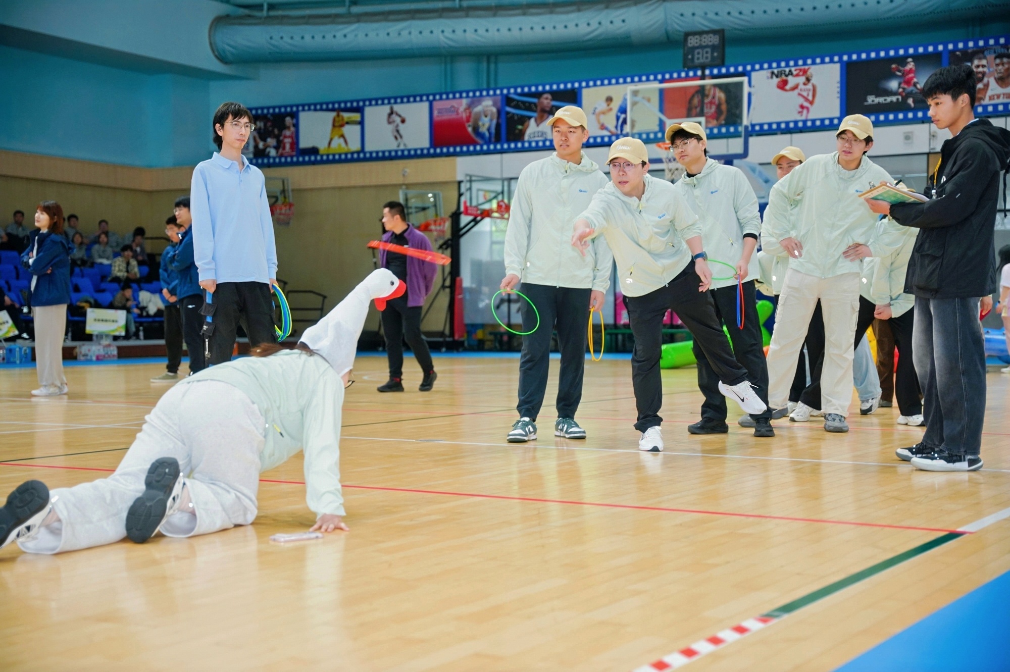 活動(dòng)現(xiàn)場(chǎng),加油聲、歡笑聲、吶喊聲此起彼伏,趣味與溫情,讓現(xiàn)場(chǎng)氛圍持續(xù)升溫!谤Z”外驚喜環(huán)節(jié),憨態(tài)可掬的大鵝立于圈中,選手凝神瞄準(zhǔn)、奮力投擲,中圈的歡呼與失手的笑語(yǔ)交織,陣陣暖意漫遍賽場(chǎng);“塔”實(shí)肯干中,八人同心拉繩控塊,有人負(fù)責(zé)指揮調(diào)度,有人負(fù)責(zé)精準(zhǔn)拉動(dòng),每一個(gè)動(dòng)作都凝聚著團(tuán)隊(duì)的智慧;“食”力出圈時(shí),男女搭檔健步如飛,在20米賽道上靈活穿梭、奮力爭(zhēng)搶;“舟”游天下環(huán)節(jié),十人分組兩端待命,五人同騎道具、緊握握把、步調(diào)一致,往返穿梭中,考驗(yàn)著大家的平衡能力與團(tuán)隊(duì)協(xié)作力;“飛”常有趣環(huán)節(jié),選手站定三米之外,調(diào)整姿勢(shì)、瞄準(zhǔn)九宮格,一個(gè)個(gè)飛盤(pán)精準(zhǔn)命中得分區(qū)域。