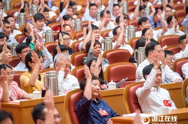 6月14日上午,浙江省第十四次黨代會舉行第二次全體會議,通過大會選舉辦法,通過監(jiān)票人、總監(jiān)票人、副總監(jiān)票人名單。(浙江在線記者 梁臻 李震宇 王堅穎 攝)