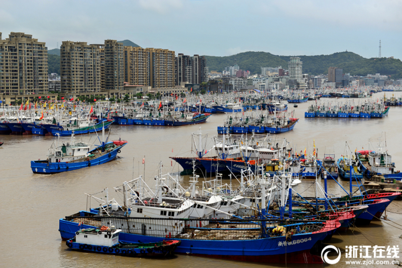 舟山臺風(fēng)來襲 漁船滿港