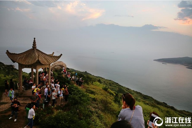 8月16日清晨,來自各地的游客在舟山東極島觀日出、賞海景,一睹東極諸島美麗風(fēng)光。(浙江在線拍友 姚峰 攝)