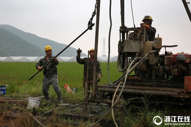 9月7日,舟山市定海區(qū)金塘島山潭片區(qū)的田野上秋雨陣陣,承擔(dān)甬舟鐵路初測(cè)勘探的工人們?cè)谟曛秀@探,為甬舟鐵路建設(shè)提供設(shè)計(jì)數(shù)據(jù),先行段力爭(zhēng)明年底前開(kāi)建。(浙江在線拍友 姚峰 攝)