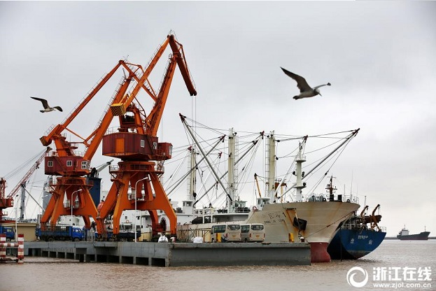 9月24日,舟山國家遠(yuǎn)洋漁業(yè)基地內(nèi)的惠群遠(yuǎn)洋漁業(yè)碼頭,吊車起落、卡車奔跑,兩艘冷藏運輸船正在卸船作業(yè)。來自海關(guān)的數(shù)據(jù)顯示,該碼頭今年1至8月份共接靠外籍船舶24艘次,接卸凍產(chǎn)品21.3萬噸,同比分別增長20%、51%。(浙江在線拍友 姚峰 齊妤曄 攝)