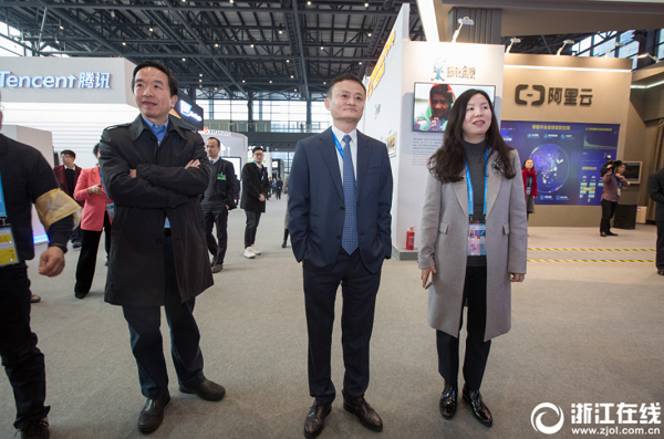 12月3日,第四屆世界互聯(lián)網(wǎng)大會(huì)開幕首日,阿里巴巴集團(tuán)控股有限公司董事局主席馬云、百度公司董事長(zhǎng)兼首席執(zhí)行官李彥宏、騰訊控股有限公司董事長(zhǎng)兼首席執(zhí)行官馬化騰不約而同現(xiàn)身互聯(lián)網(wǎng)之光博覽會(huì),在展臺(tái)前為自家企業(yè)代言。(記者 倪雁強(qiáng) 攝)