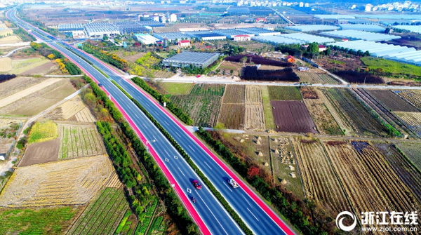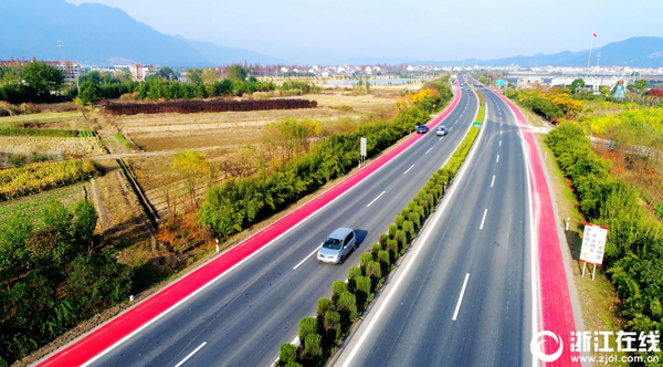 12月7日,鳥瞰新建的S322省道仙居縣田市鎮(zhèn)段兩側(cè)“彩色”慢行車道。為給市民出行營造良好的安全環(huán)境,仙居縣今年11月底在S322省道仙居縣田市鎮(zhèn)至白塔鎮(zhèn)路段兩側(cè)建成兩條6公里長的慢行車道。該車道在原來瀝青混凝土上噴刷彩色標(biāo)線油漆,明晰機(jī)動(dòng)車道與非機(jī)動(dòng)車道,預(yù)防交通事故發(fā)生。(王華斌 攝)