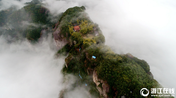 1月7日,臺州市仙居景星巖風景區(qū)云霧繚繞,群巒若隱若現(xiàn),如人間仙境。(拍友 王華斌 攝)