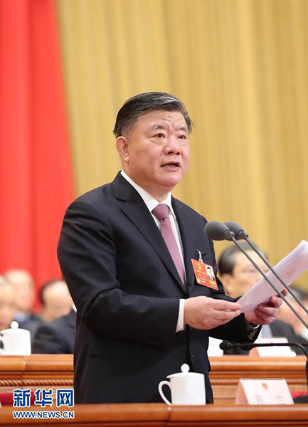 3月19日,十三屆全國人大一次會議在北京人民大會堂舉行第七次全體會議。陳竺主持會議。 新華社記者 劉衛(wèi)兵 攝