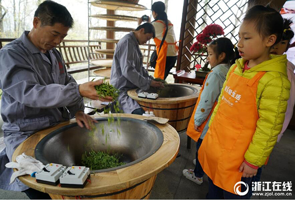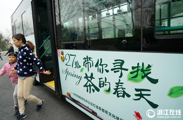 3月25日,西湖龍井茶進(jìn)入全面開采期,位于西湖龍井茶原產(chǎn)地一級(jí)保護(hù)區(qū)內(nèi)的中國(guó)茶業(yè)博物館聯(lián)手杭州公交集團(tuán),將往返于岳王路至茶博龍井館區(qū)間的27路打造成“帶你尋找茶的春天”茶文化體驗(yàn)專線公交,載著市民游客從市中心直達(dá)龍井茶園,體驗(yàn)西湖龍井茶的采茶、炒茶、品茶全過(guò)程。(記者 董旭明 攝)