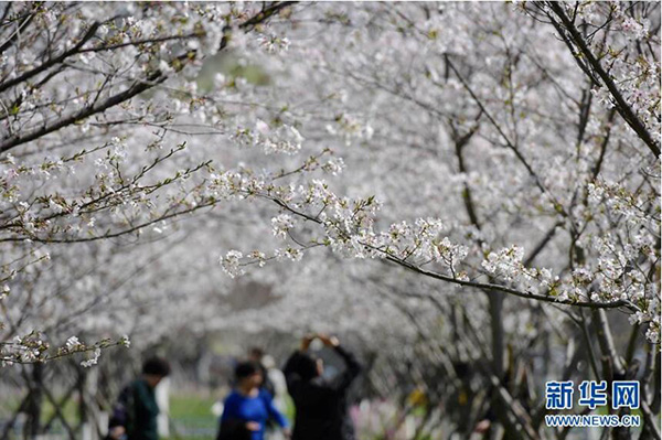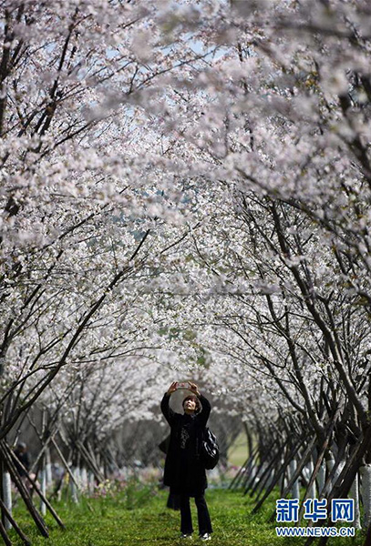 這是3月28日在浙江臺州市中心一個公園拍攝的櫻花。 新華社記者 殷博古 攝
