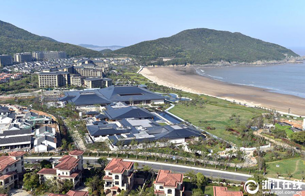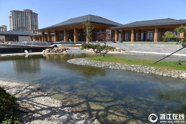 被譽為“舟山最美會客廳”的國際海島旅游大會永久會址位于朱家尖,今年8月將開出海上絲綢之路酒店。這家投資10億元的主題酒店,客房融入了“海上絲綢之路”沿途的中國江南、東南亞、中東、地中海四種建筑風格和異域風情,今年9月將承接國際油商大會,首批員工正加緊培訓。(記者 潘海松 攝)