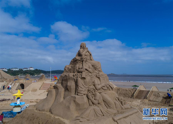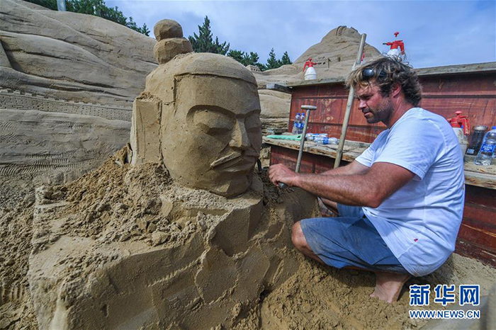 從7月初開始,在浙江省舟山市朱家尖南沙景區(qū)內(nèi),30多名中外沙雕藝術(shù)家共同打造一座海邊的“沙雕夢幻王國”,為即將開幕的舟山國際沙雕節(jié)做準(zhǔn)備。本次國際沙雕節(jié)以“情系沙雕20年”為主題展開創(chuàng)作,用獨(dú)特的沙雕藝術(shù)展示包括海洋文化、中外風(fēng)土人情、經(jīng)典電影、歷史故事等多主題的沙雕作品,沙雕區(qū)域長200米、寬50米,總用沙量2萬余立方米,沙雕作品完成后將在7月21日向游客正式開放。記者 徐昱 攝
