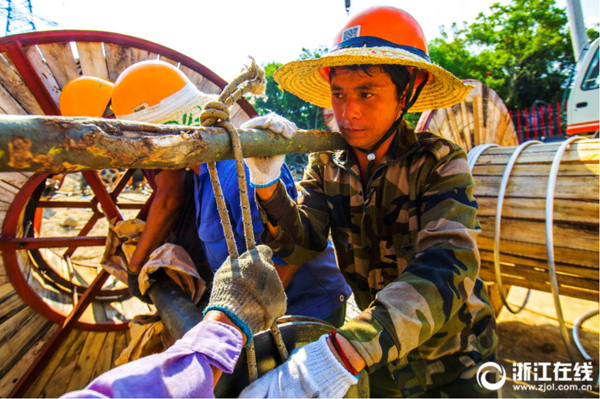 隨著舟山500千伏聯(lián)網(wǎng)輸變電工程立塔工作的逐段完成,架線工作也依照計劃穩(wěn)步推進(jìn),全體施工人員在高溫季節(jié)嚴(yán)格按照工程要求、嚴(yán)把質(zhì)量關(guān),爭先創(chuàng)優(yōu),力爭為舟山再添精品工程。(浙江在線拍友 姚峰 王浩 張帆 攝)