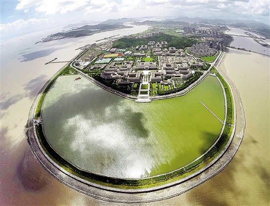舟山長峙島,四周小島星羅棋布,以獨特的海島環(huán)境為基礎(chǔ)而建的浙江海洋大學坐落其中,寧靜中透著秀氣。( 拍友 姚峰 攝) |