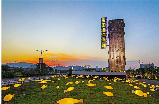舟山市定海區(qū)遠洋漁業(yè)小鎮(zhèn)夜景。