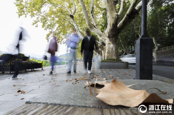 10月10日,隨著一場(chǎng)雨水沖刷,杭州城區(qū)最低溫度跌至17℃。