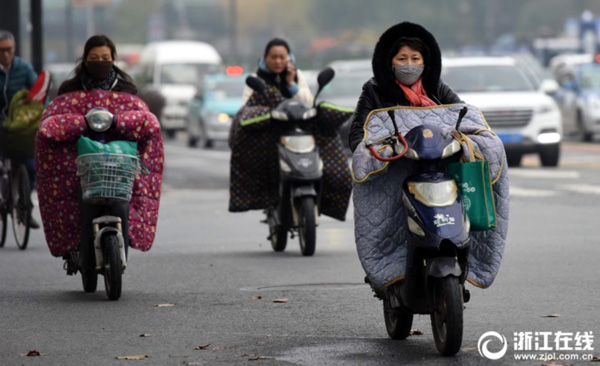 11月21日,新一股強冷空氣來襲,杭城雨水漸止,風(fēng)力加大。