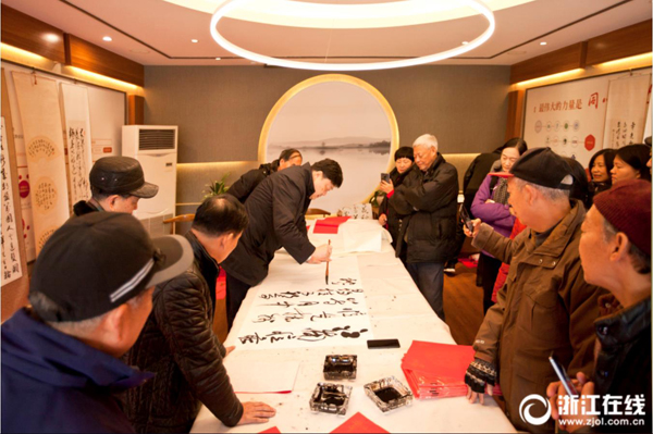 江干區(qū)采荷街道在貫徹文化強(qiáng)省的建設(shè)中,全力打造采荷文化氛圍,開展“荷香閱讀”“韻墨采荷”等各種文化娛樂活動(dòng),成立采荷書畫筆會(huì)、江汀尚墨書畫社、靜怡水墨江南、紅菱翰墨社團(tuán)、青荷苑墨香人家等10多個(gè)規(guī)范的書法社團(tuán),團(tuán)隊(duì)人數(shù)達(dá)到200余人,遍布采荷各個(gè)區(qū)域。(浙江在線拍友 王俊輝 攝)
