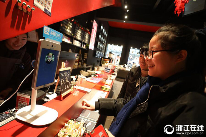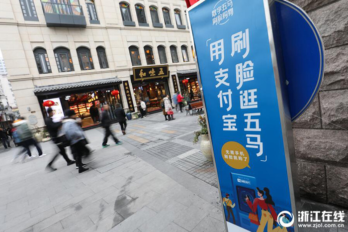 1月16日,全國首條刷臉支付商業(yè)街在溫州五馬街啟動(dòng),顧客只需和屏幕“對(duì)視”一眼,再輸入綁定手機(jī)號(hào)碼即可完成支付。