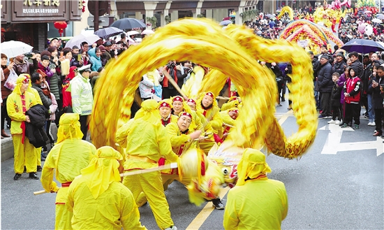2月17日,德清縣乾元鎮(zhèn)舉行乾龍燈會活動,祈福美好生活。2009年,乾龍燈會被列為省級非物質(zhì)文化遺產(chǎn),表演吸引來自四面八方的游客前來觀看。(記者 倪雁強(qiáng) 拍友 王正 攝)