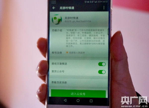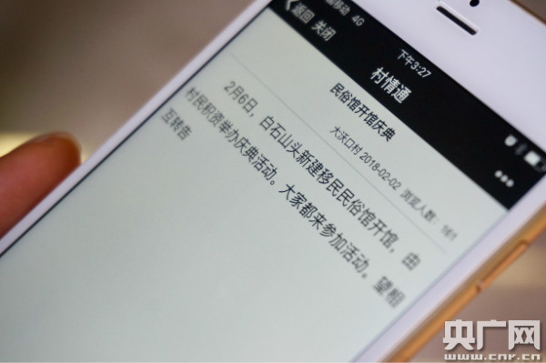 “村情通”上的公告 央廣網(wǎng)記者 傅煒如 攝