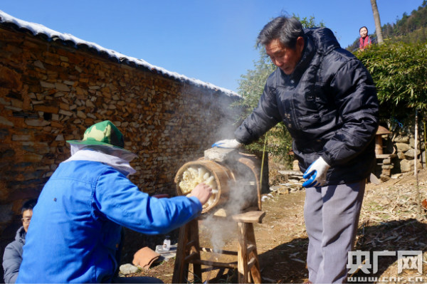 農(nóng)民收蜂蜜 央廣網(wǎng)記者傅煒如 攝