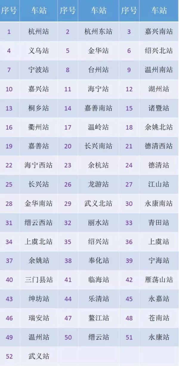為了更好地服務(wù)廣大旅客,提供車站購票便捷服務(wù),上鐵目前在管內(nèi)148個車站部分人工售票窗口和自助售票機(jī)開通了支付寶購票功能。上海地區(qū)可刷支付寶購票的車站有7個,安徽地區(qū)有47個,江蘇地區(qū)有42個,浙江地區(qū)有52個。浙江具體是哪52個站請看附圖。