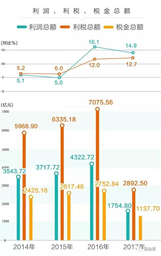 企業(yè)利潤總額從 2016 年開始呈現(xiàn)較好的增長態(tài)勢。利潤總額的增長幅度超過企業(yè)繳納的稅金增長,表明企業(yè)的稅負(fù)在減輕,利潤空間在擴(kuò)大;