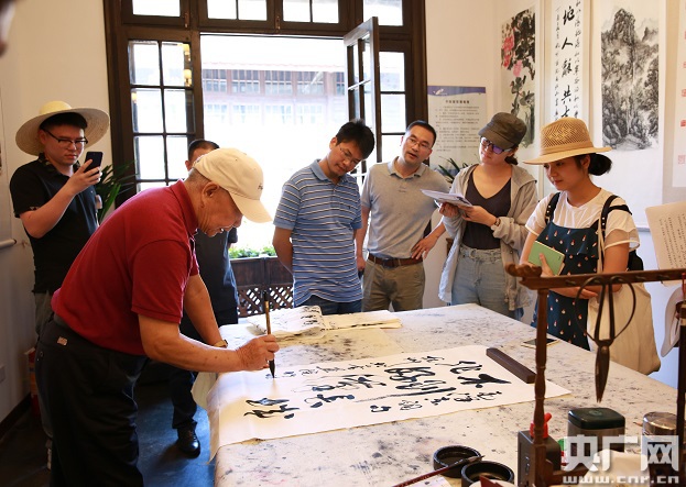 記者在彌陀寺里的一角名為北山書畫院的屋子里看到一位正在專心致志地研習(xí)書法的老人。老人告訴記者,他姓丁,今年69歲了,幾乎每天都來這個(gè)書畫院練習(xí)書法!爸拔覀儧]有這么大的活動(dòng)場(chǎng)所,現(xiàn)在因?yàn)椤囊徊稹こ,寺廟整個(gè)維修翻新了,這里面還特別增加了這樣一個(gè)屋子用來作為北山書畫院的活動(dòng)場(chǎng)所,在這里練習(xí)書法能陶冶身心,豐富我們的老年生活,我覺得特別好”,丁老先生告訴記者。