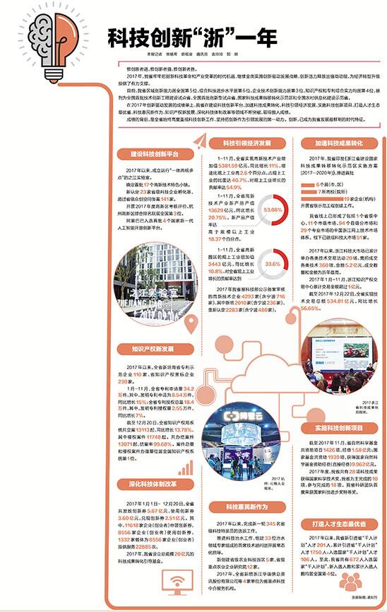 2017年,浙江牢牢把握新科技革命和產(chǎn)業(yè)變革的時代機遇,繼續(xù)全面實施創(chuàng)新驅(qū)動發(fā)展戰(zhàn)略,創(chuàng)新活力釋放出強勁動能,為經(jīng)濟轉(zhuǎn)型升級提供了有力支撐。