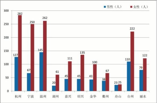 截至2017年末,全省共有百歲老人2379人,比上年同期增加72人。其中:男性742人,占總數(shù)的31.19%;女性1637人,占總數(shù)的68.81%。杭州市百歲老人數(shù)居全省之首,有409人;其次為溫州市和臺州市,各有407人和332人。全省最年長者是寧波市海曙區(qū)111歲的施杏月(女)老人。